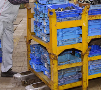 對于汽車零部件加工廠的工人們來說,如果手動搬運這些箱裝的零部件,一不小心跌倒后很容易造成零部件灑落狀況,所以為了提高運輸量和搬運效率,工人通常會采用手動液壓搬運車,而且他們使用的固定裝置不是托盤,而是木架,既能防止塑料箱陷落,又能提高載貨量。